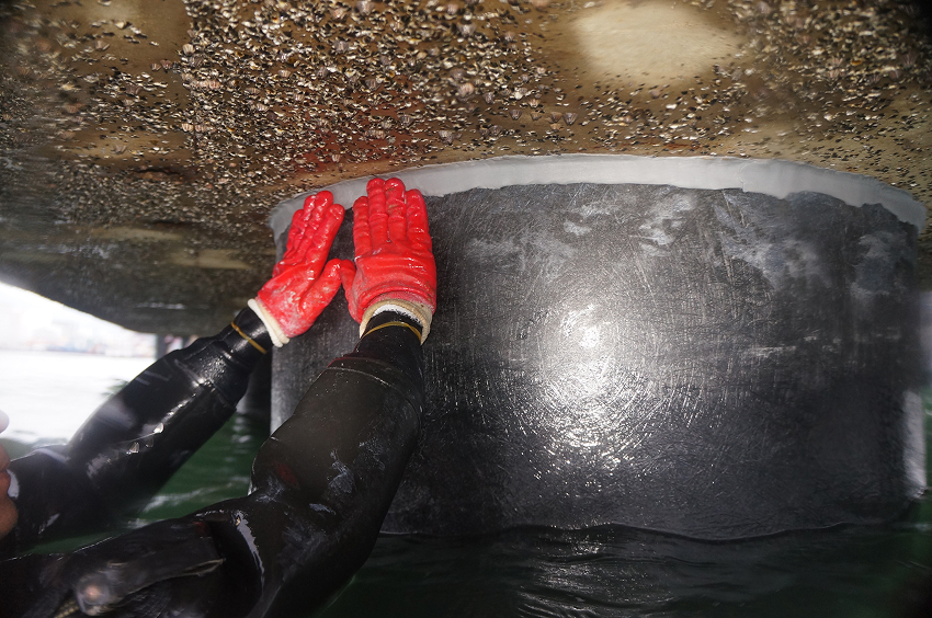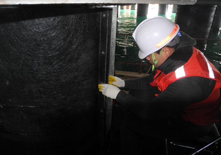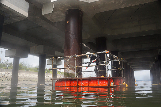수중 구조물의 부식을 막기 위한 첫 단계, 녹과 이물질을 제거해 TAPE 밀착력을 확보합니다. 정밀한 표면처리가 방식 효과의 핵심입니다.