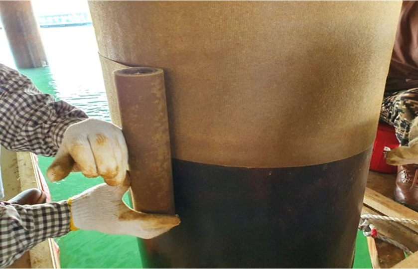 방식층과 최대한 밀착 되도록 설치하여 파도와 해양 부유물 등으로 부터 방식층을 보호합니다.